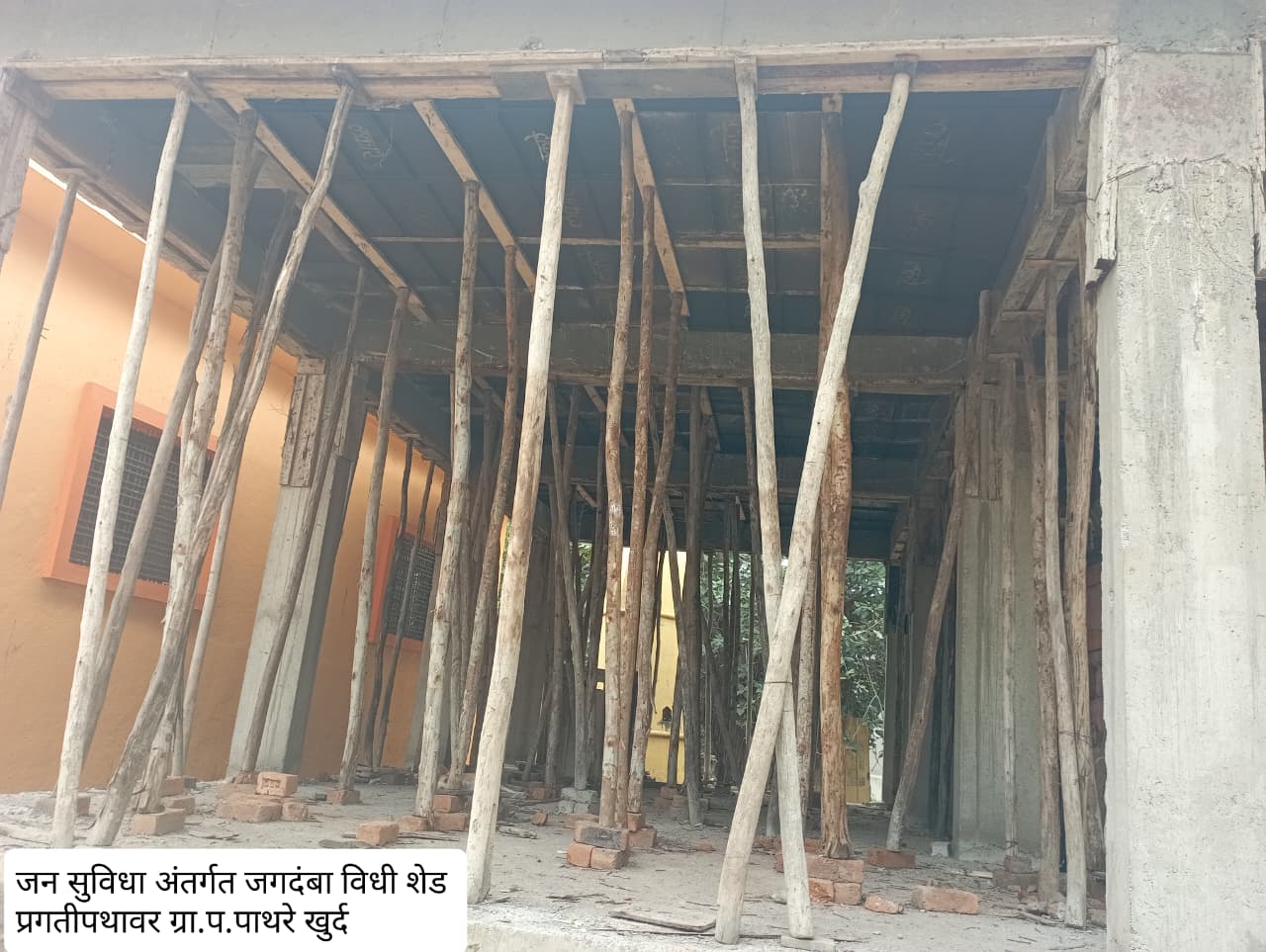 जन सुविधा अंतर्गत जगदंबा विधी शेड प्रगतीपथावर ग्रा.प. पाथरे खुर्द.